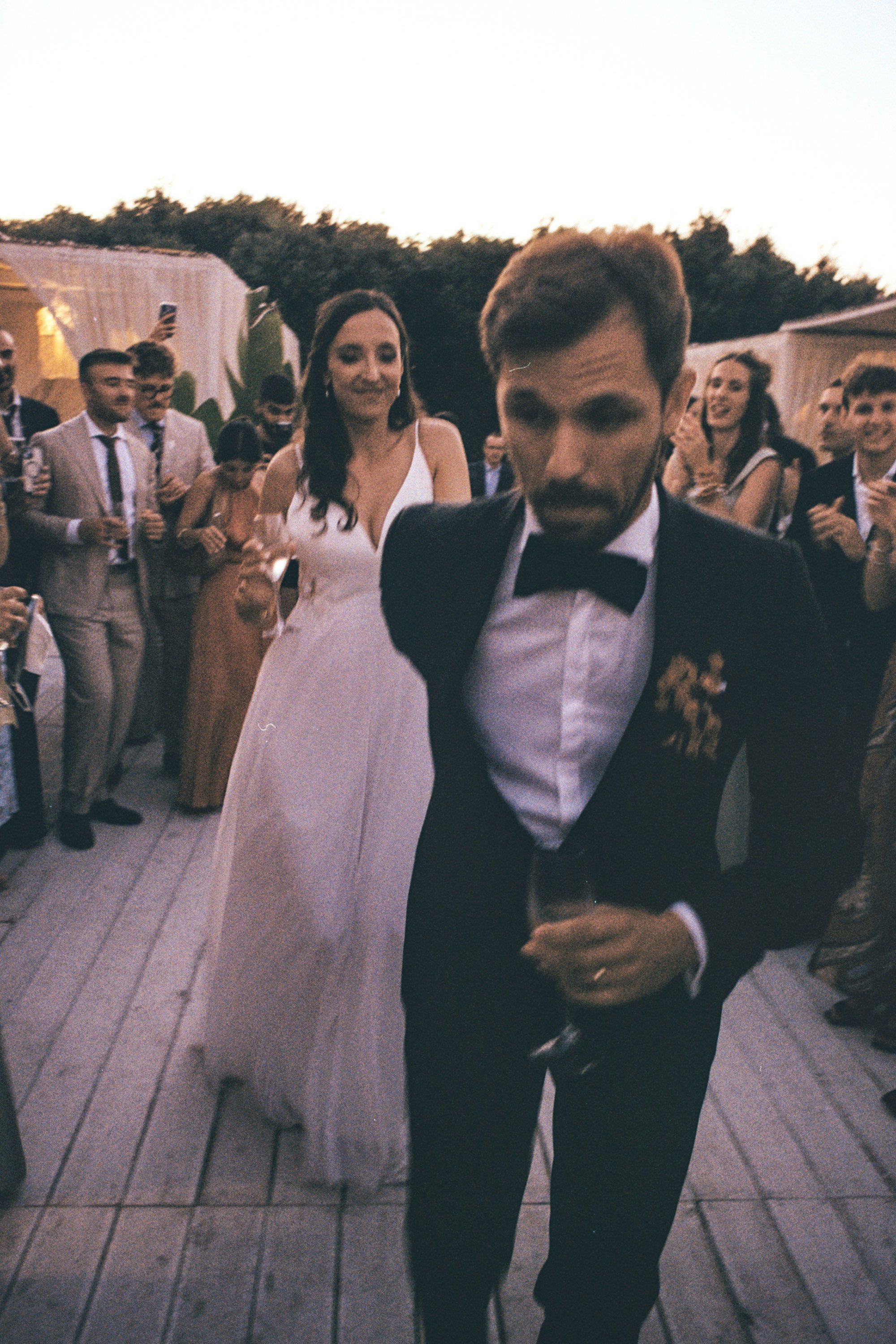 musica latina, amici ballerini, Nicky e Manon sempre al centro della pista, trascinando tutti in un clima di festa pura. Una serata piena di movimento, sorrisi e libertà, culminata con un brindisi notturno sul prato, avvolti dall’atmosfera calda e ospitale della Puglia.